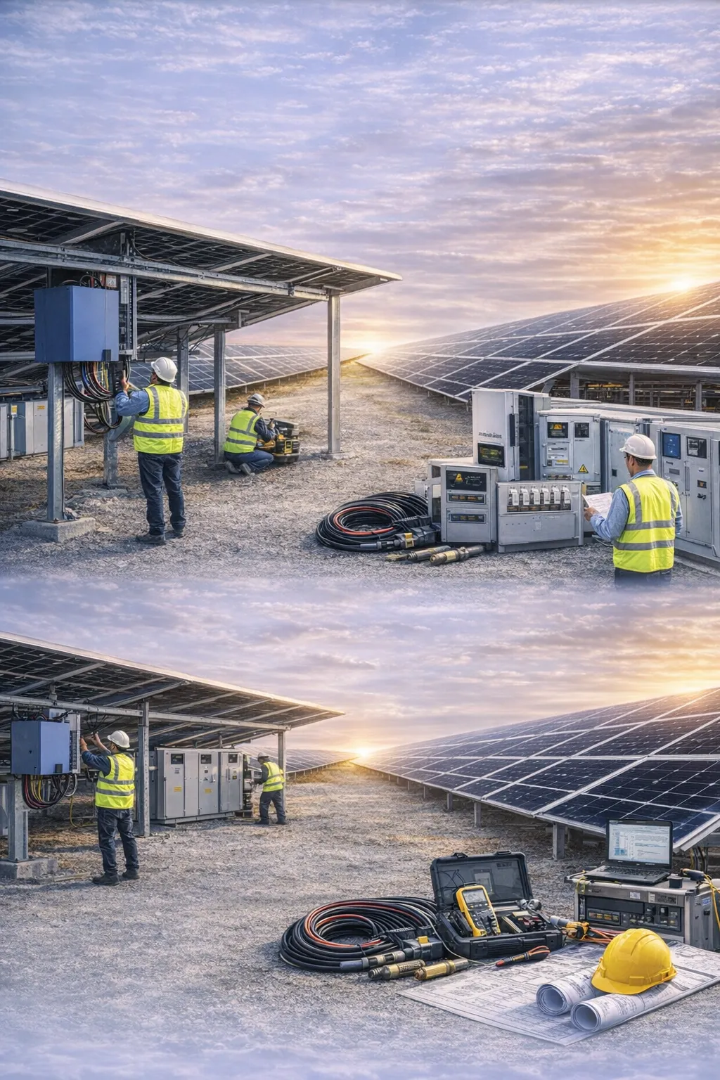 ✓ DC string wiring & combiner box integration